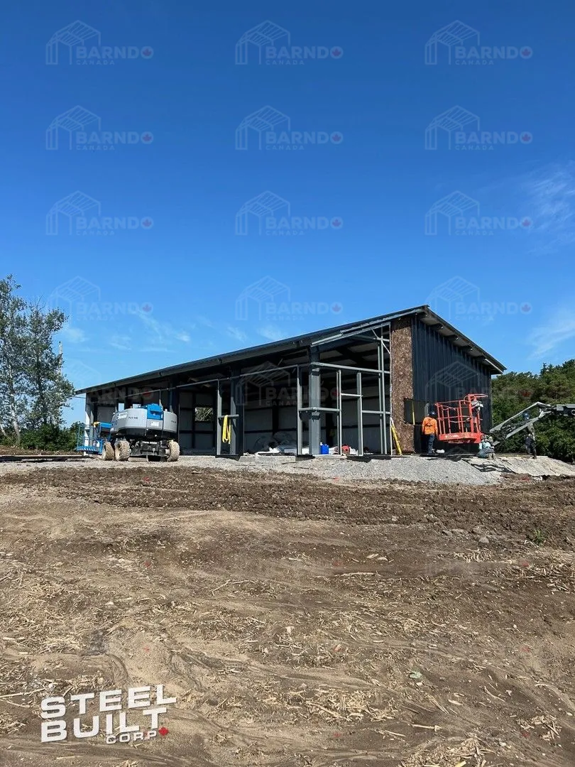 Project Highlights Main Floor Living Space: 2,800 sq ft Total Living Space: 3,600 sq ft including loft // Loft Feature: “Look-to-below” open loft design // Outdoor Living: 20-foot inset covered porch // Building Type: Barndominium // This 40' × 70' × 22' barndominium located in Burk’s Falls, Ontario combines open-concept living with the rustic charm of Northern Ontario. The spacious layout and large inset porch make it an ideal home for year-round living and summer entertaining. Check back soon for additional photos as we complete another slice of paradise. Click the image above to view the full gallery.